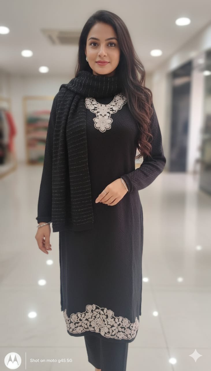 🌸 Dupatta: Matching Black Wollen Dupatta with Subtle Stripes